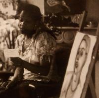 En 1937, le couple Adam se sépare. C’est à cette époque, qu’Elena Mossolova commence une carrière professionnelle de photographe et prend le nom d’Hélène Adant. Elle s’installe avec sa cousine Lydia dans un appartement de quatre pièces au 90 du boulevard de Port Royal dans le 5e arr., dont l’une est aménagée en atelier de photographie, comme le montre la mention au dos des photographies. Le fonds de l’INHA renferme des témoignages intéressants sur la vie artistique et intellectuelle des années 1950-1960. Tout d’abord il faut mentionner l’ensemble de tirages dédié à Henri Matisse, témoignages des dernières années de la vie du peintre, à la fin des années 1940 et au début des années 1950. On remarquera les photos de Matisse au travail dans la chapelle du Rosaire de Vence, ou les séances de pose avec son modèle haïtien Carmen.